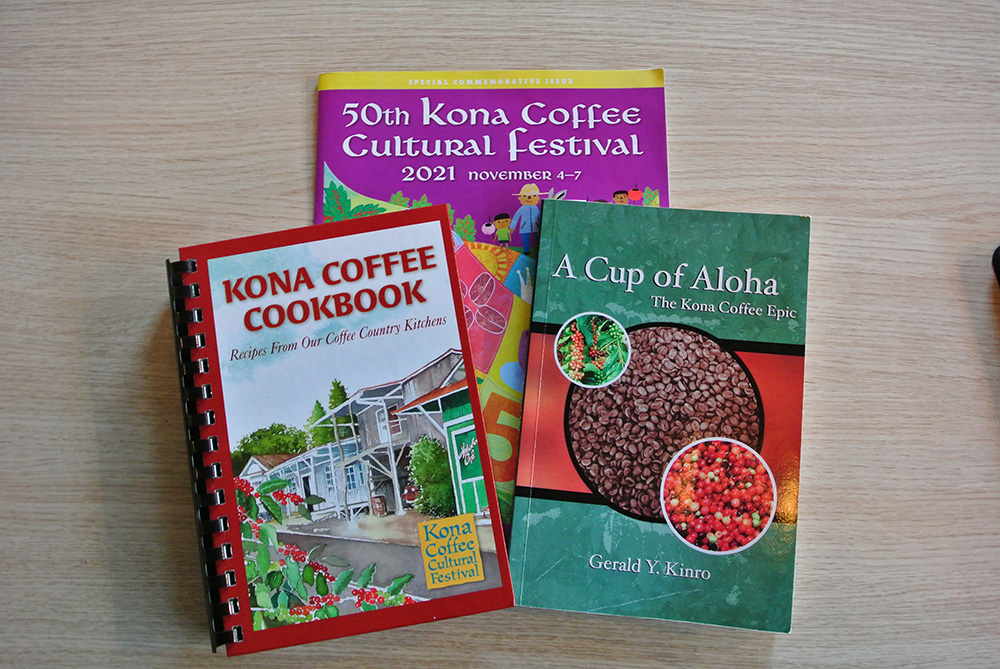 今年で通算50回目を迎えたコナ・コーヒーフェスティバルが、2021年11月4日~7日まで開催されました。 コナのウィルフレッド・ヤマサワさんから日本人が携わったコーヒーの歴史本と、自らが栽培した100%コナコーヒーが、当館通信員のあやこさんからは、コーヒーのレシピ本が送られてきました。